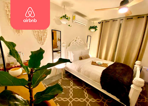 Cuenta con Cama California King con Baño, TV, Internet, Refrigerador, Ventilador de Techo, Minisplit, Humidificador, Reductor de Radiación Electromagnética, Protector vs Chinches/Ácaros, Sabanos Premium y Almohadas y Colchas de Plumas, Purificador de Aire, Cortinas Blackout...
